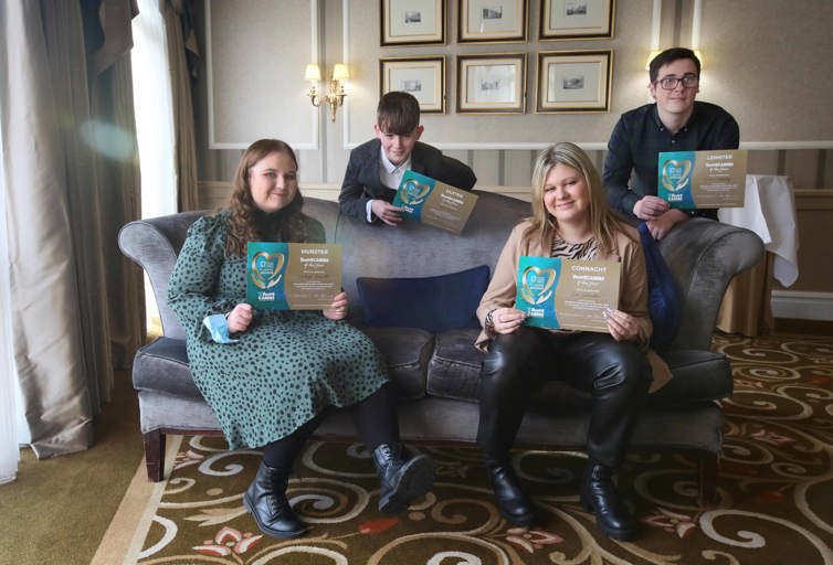 Pictured are l-r: Clodagh Bennett (18) from Rosbrien, Limerick Munster Young Carer of the Year; Alex Barr (11) from Drumadooey, Birdstown, Co. Donegal, Ulster Young Carer of the Year; Zoe Gilmartin (13) from Bonniconlon, Ballina, Co. Mayo, Connacht Young Carer of the Year; and Evan Corbally (17) from Hollystown, Dublin, Leinster Young Carer of the Year. PHOTO: Mark Stedman