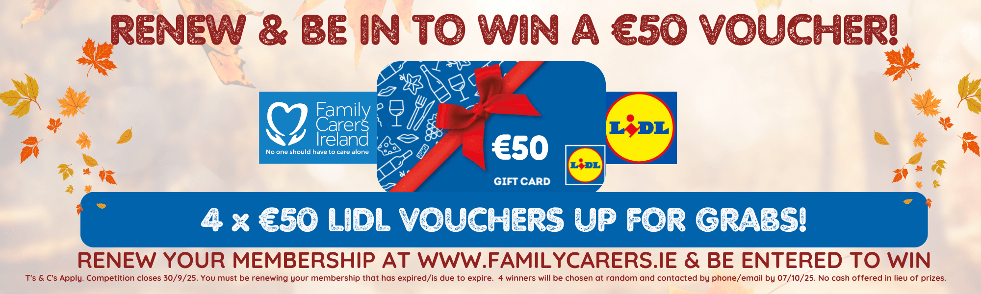 SIMPLY CLICK THE LINK BELOW TO RENEW QUICKLY and you'll be in with a chance of WINNING 1 OF 4 €50 Lidl Vouchers!