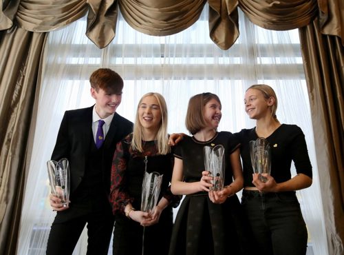 Pictured from left to right are 2019 Netwatch Young Carers of the Year Matthew McCartin, Áine Grant, Hailey Golden and Lily Power. PHOTO: Mark Stedman